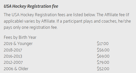 NDAHA has an Affiliate fee of $15 which is added to your USA Hockey Registration that is lined out below. Please click on the picture to find more information on what you are receiving when registering with USAH.