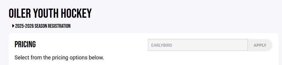 On the page where you select the pricing/age group for your player, there is a spot at the top for discount code. Enter "EARLYBIRD" for $50 off. This will work for each player you register.